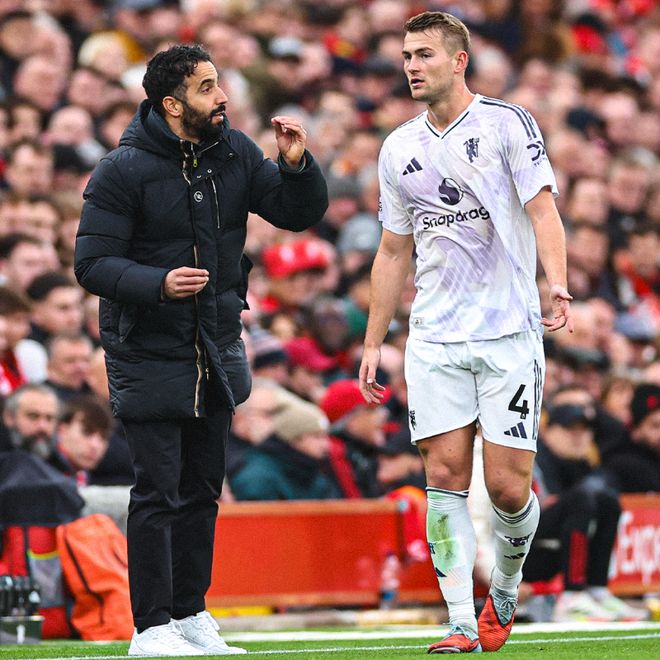 不過,這位19歲的小將顯然沒有做好英超首發(fā)準(zhǔn)備,開場不久便吃到黃牌,半場5次對抗全部失敗,中場休息便被阿莫林換下。隨著德里赫特的復(fù)出,他將占據(jù)三中衛(wèi)的居中主力位置。而在翼衛(wèi)位置上,阿瑪?shù)隆さ蟻喡搴团撂乩锟恕ざ酄柟艑?dān)任主力翼衛(wèi)。