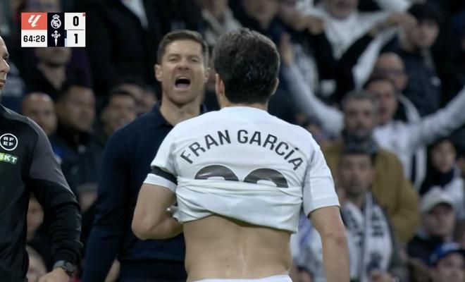 此役主場(chǎng)對(duì)陣塞爾塔,首發(fā)出戰(zhàn)的弗蘭-加西亞在比賽第63分鐘和第64分鐘連續(xù)因犯規(guī)領(lǐng)到黃牌,兩黃變一紅被罰下,這導(dǎo)致0-1落后的皇馬被迫少一人作戰(zhàn)。
